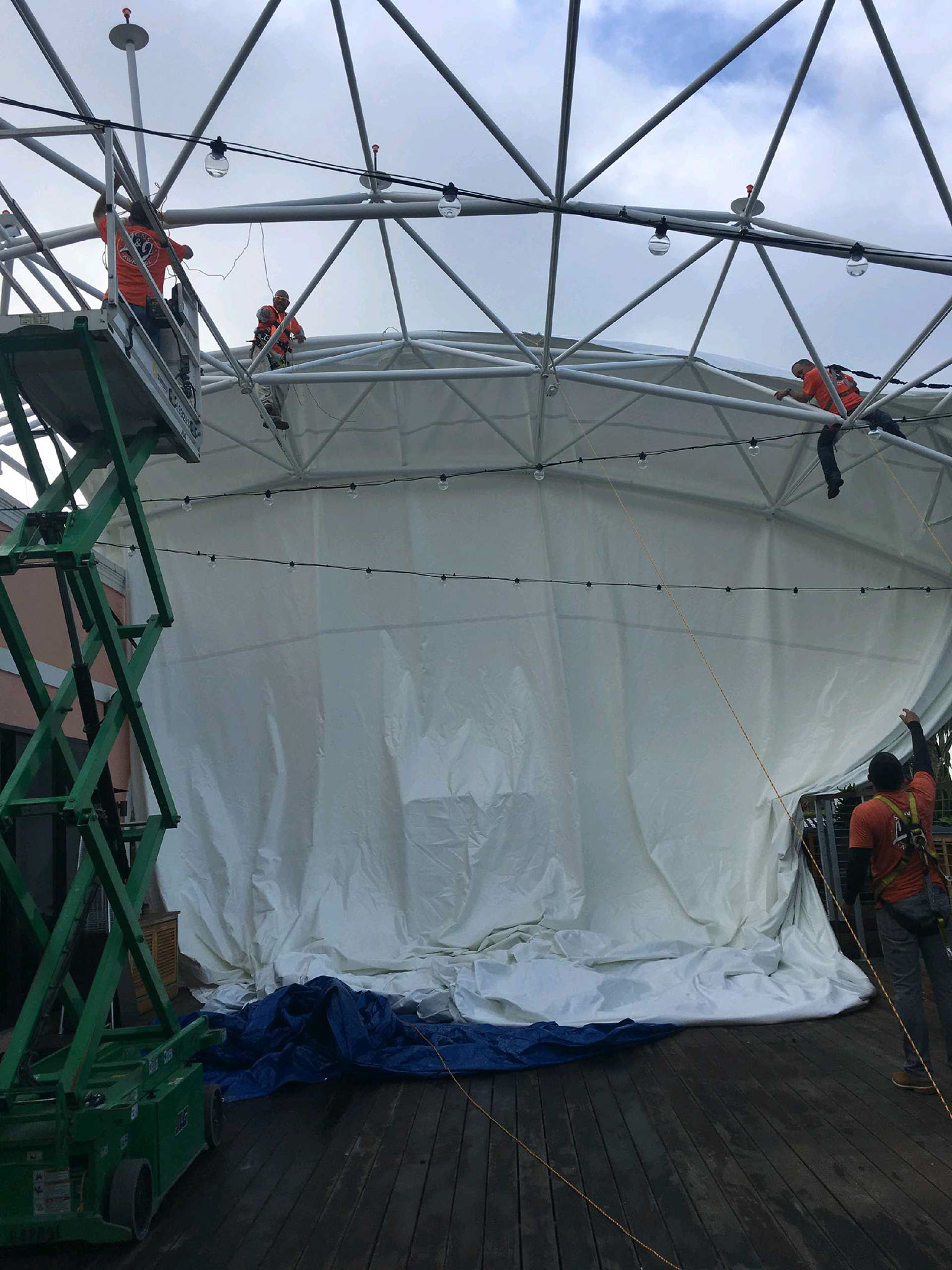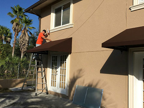 Awning recovers are a pretty straight forward process. We take off the old cover, create a new one and install it back onto your existing frame in whatever mounting method it was originally intended to be installed. However, the most important part of the process that is typically neglected by many contractors is the need for permitting.