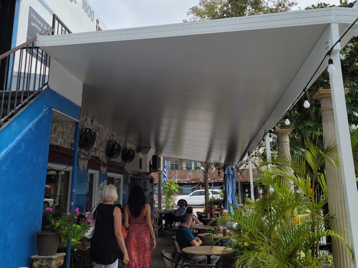 Our insulated canopy solutions are a great way to provide shade to your commercial or residential outdoor seating space. The insulated canopies are the best solution for limiting the amount of heat build up underneath the canopy space and is a sleak and sharp looking canopy system.