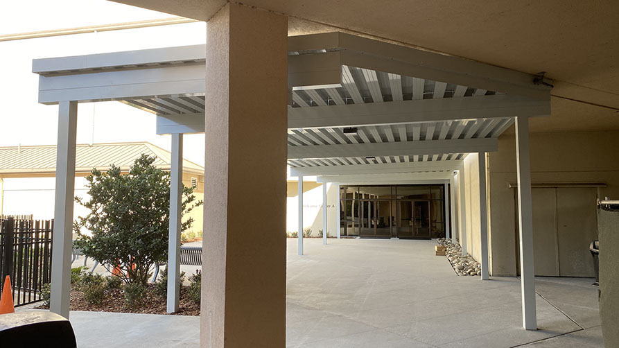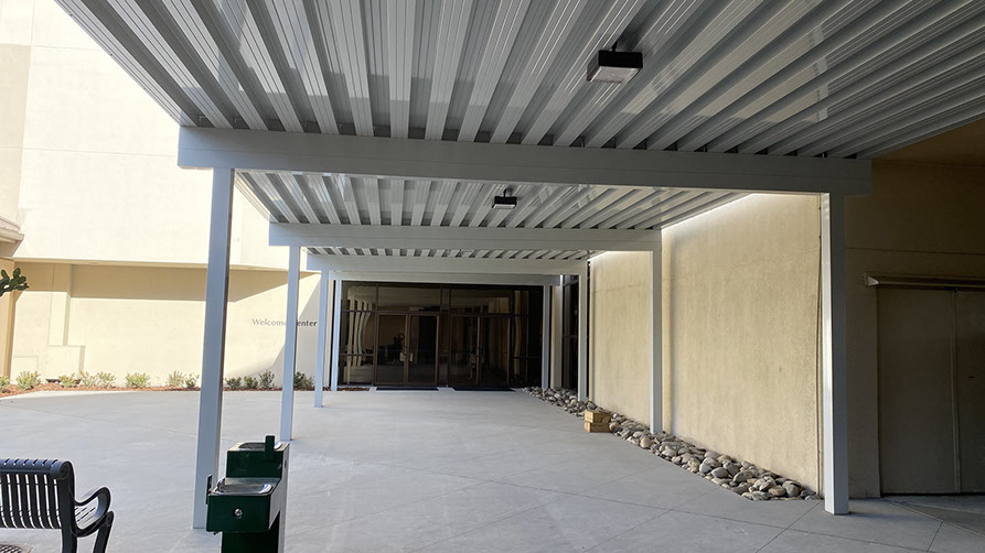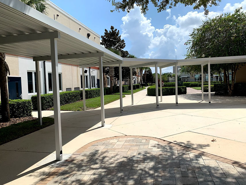 Our walkway canopies come in various sizes, shapes and types. Our walkway canopy solutions are custom made to fit your company or organizations needs.